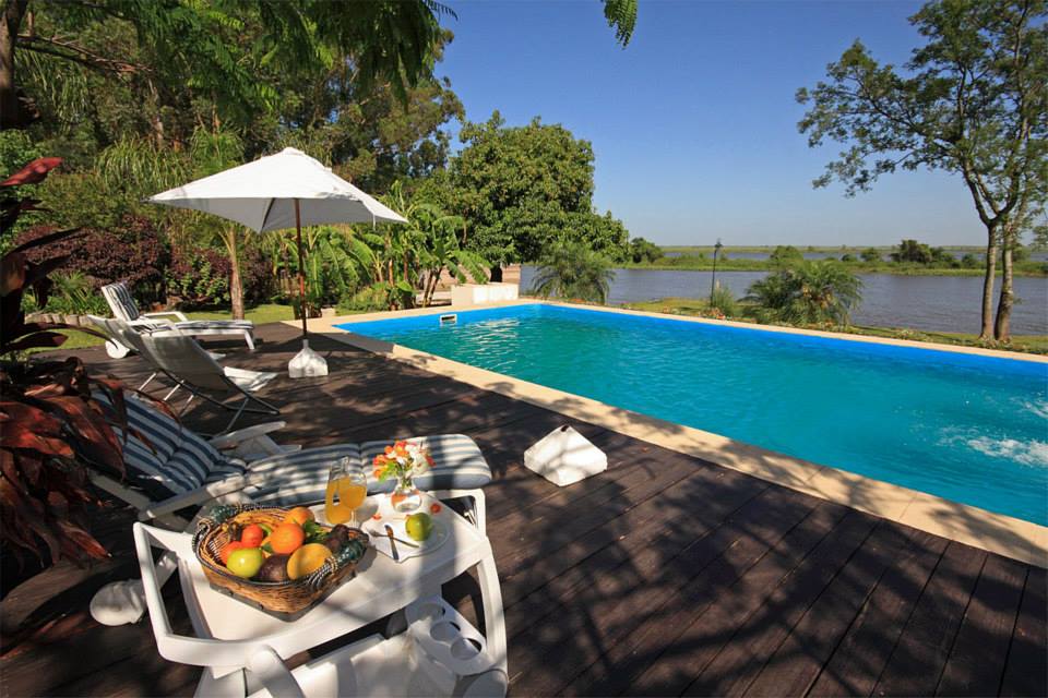 In Corrientes Province, on the beautiful Corrientes River sits Riverland’s Corrientes Lodge. Hotel style accommodations include 13 private rooms, modern amenities, full staff and outdoor swimming pool overlooking the river. This lodge is ideal for larger groups and families. Each room is equipped with queen or king size beds, heating and air conditioning, private bathrooms, television, Wi-Fi and mini fridge. Here guests can enjoy modern living, open garden areas and outdoor barbecues while overlooking the river just yards away.