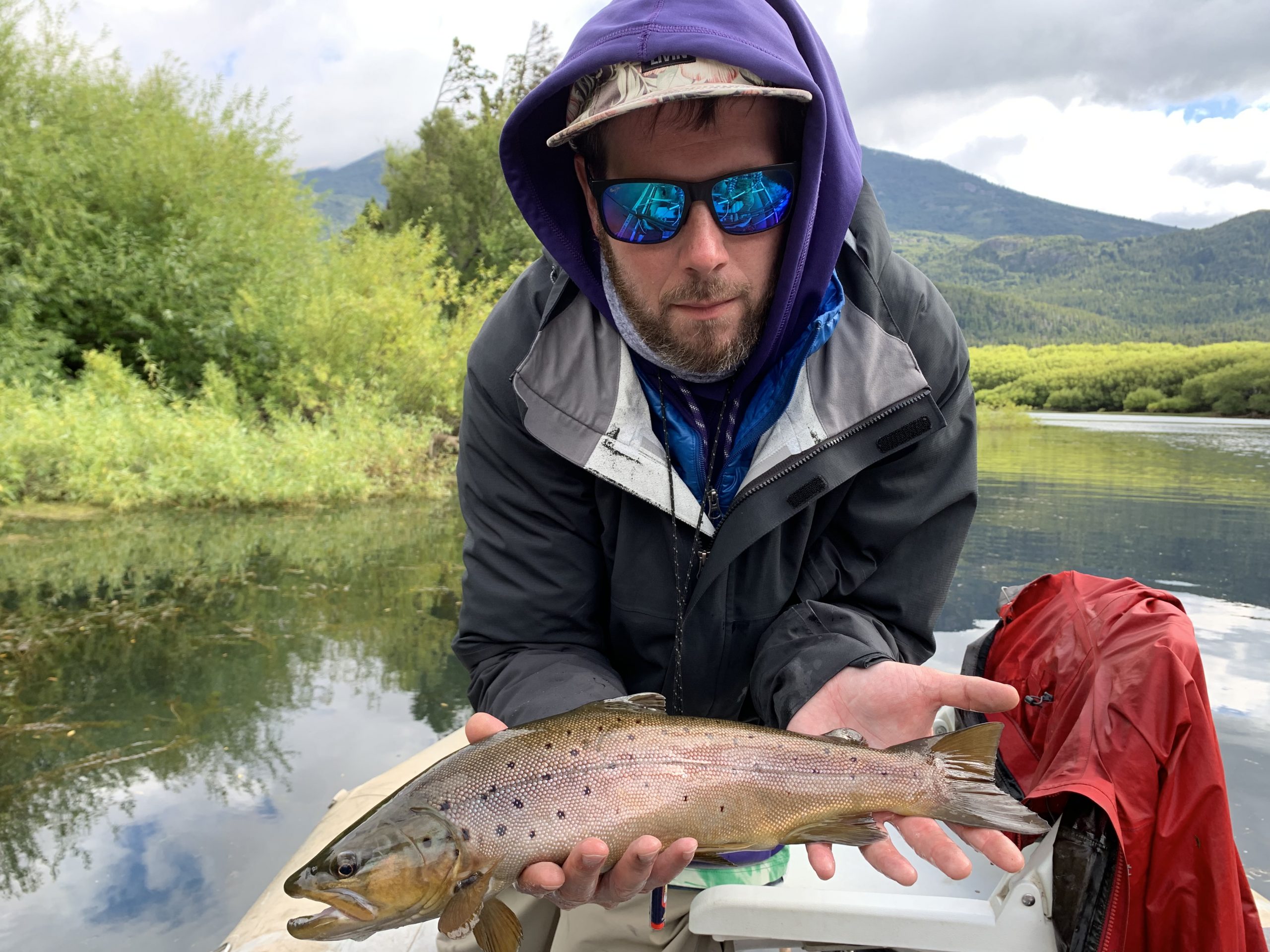 The next day with windy conditions persisting we started off floating a spring creek. This option, tucked away and out of the wind, gave our guests some amazing site fishing opportunities as the water is gin clear and has little movement. We landed several healthy brown and brooke trout that rose to hoppers and took streamers. After lunch the wind died down and we returned to the main section of the Rio Grande. We floated to the Chilean border while putting several healthy fish in the net.